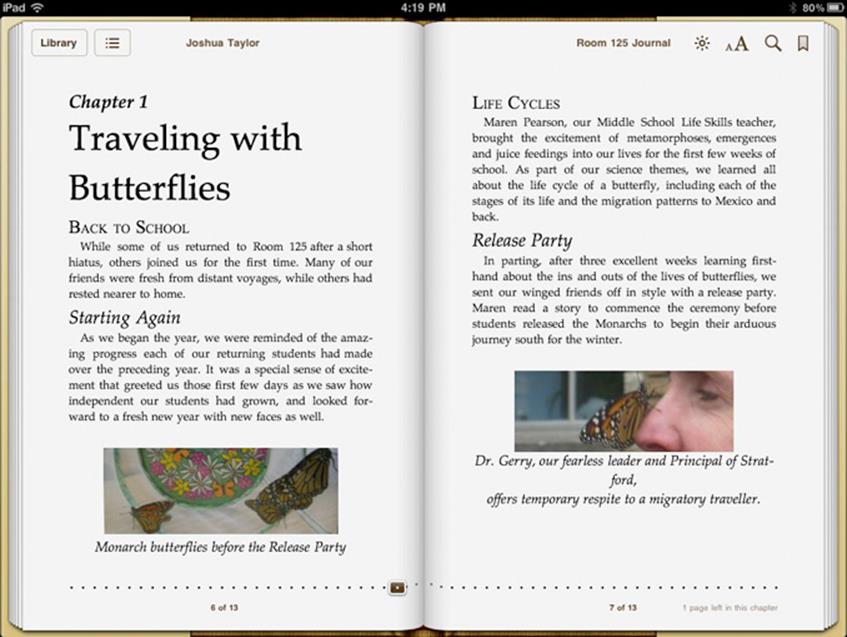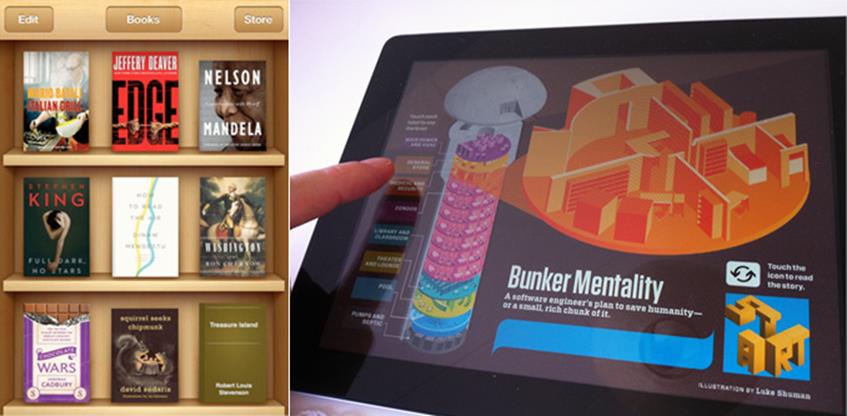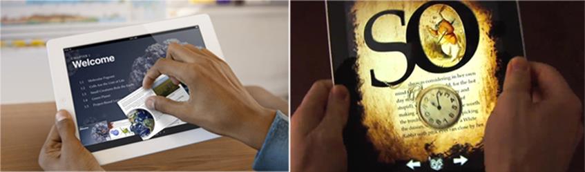 애플의 iBooks와 앱북. 저장 가능성의 한계를 극복하고 멀티미디어 컨텐츠를 삽입할 수 있게 되었다.