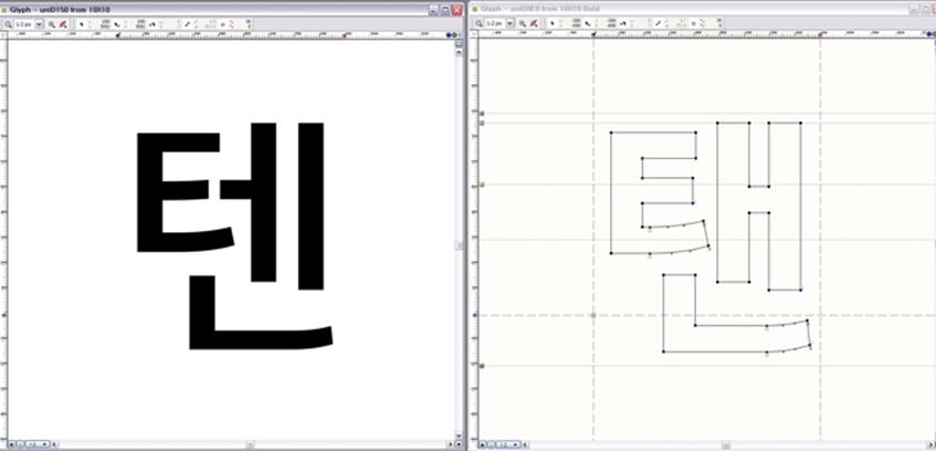 한글 8,822자는 드리거(폰트메이커)에서 작업을 진행했다.
