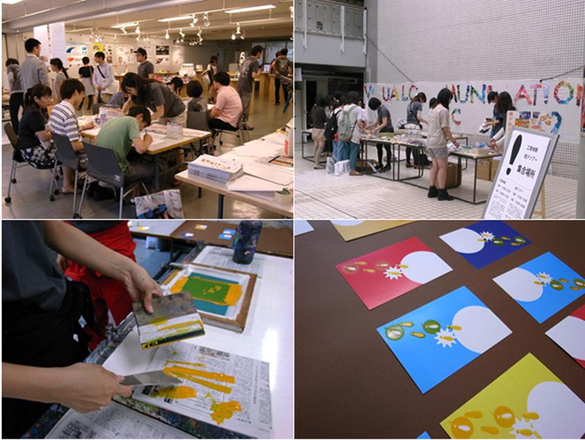 캠퍼스 안의 여기저기에서 가장 눈에 띄는 행사는 학생들이 진행하는 워크숍, 수업 내 작업을 경험해보는 코너다. 현역 대학생들과 예비 미대생들은 함께 태마를 정하고, 스토리를 만들어 손을 움직인다. 특별히 학점이 나오거나 보상을 받는 것도 아닌데, 작품을 통한 재학생과 수험생 간의 커뮤니케이션은 매우 진지하다. 지금껏 갈고 닦은 전공분야 솜씨를 선보이는 재학생과 미래 자신의 전공분야가 될 실기 과정을 미리 실습해보는 수험생 눈빛이 워크숍에서 주어진 한 장의 실습용 종이를 통해 훌륭한 소통으로 이루어진다. 실크스크린으로 제작한 엽서는 자신이 손수 제작한 첫 인쇄물로 좋은 기념이 될 것 같다.