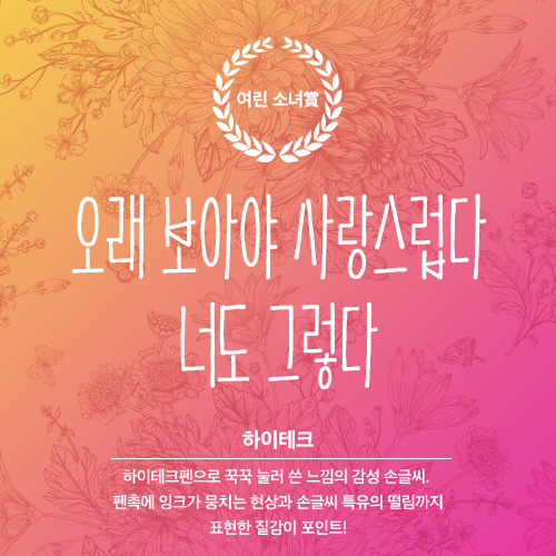 펜촉에 잉크가 뭉치는 현상과 손글씨 특유의 떨림까지 표현한 질감이 포인트!