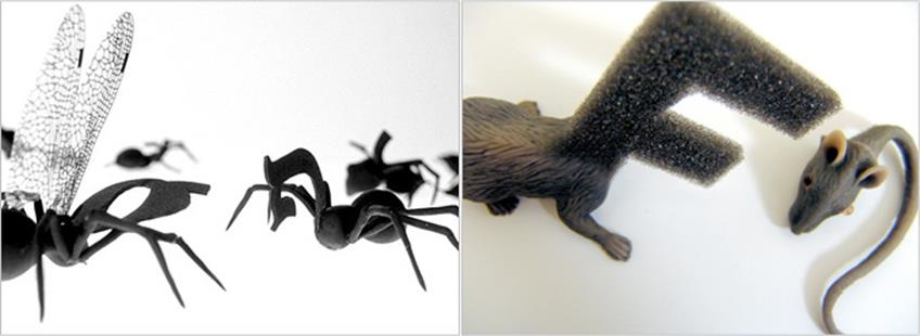 ▲ Biotypography creatures. 서로 다른 문자를 가진 개체들이 모여 하나의 단어를 만들어 우리와 소통한다. 이것이 에저가 상상하는 바이오타이포그래피다.
