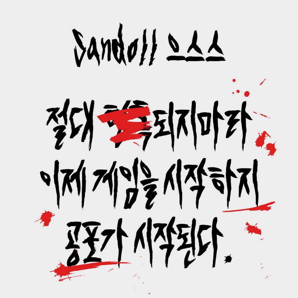 납량특집 만들어야 하는 분들 모두 주목하세요! 구름레터에 폰트 제작기로도 소개한 적이 있는 Sandoll 으스스는 작정하고 여름을 겨냥해 만든 폰트입니다. 이름에서 느낄 수 있듯이 공포, 호러와 같은 느낌의 콘텐츠를 제작할 때 사용하기 좋죠. 한글 폰트는 영문 폰트에 비해 역사가 짧다보니 항상 디자인 할 때마다 다양한 갈래의 디자인이 부족한 것 같다는 단점이 있었는데요. 이렇게 컨셉이 분명한 폰트들이 계속해서 나와주면 너무 좋을 것 같아요. 함께 출시된 Sandoll 끼기긱도 추천합니다.