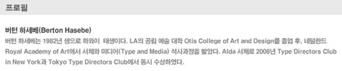 뉴욕에서 활동하는 서체 디자이너 버턴 하세베(Berton Hasebe)의 서체 Alda를 소개한다. Alda는 하세베가 네덜란드 로얄 예술 대학(Royal Academy of Art)에서 서체와 미디어(Type and Media) 석사과정을 지내면서 고안한 서체이다.